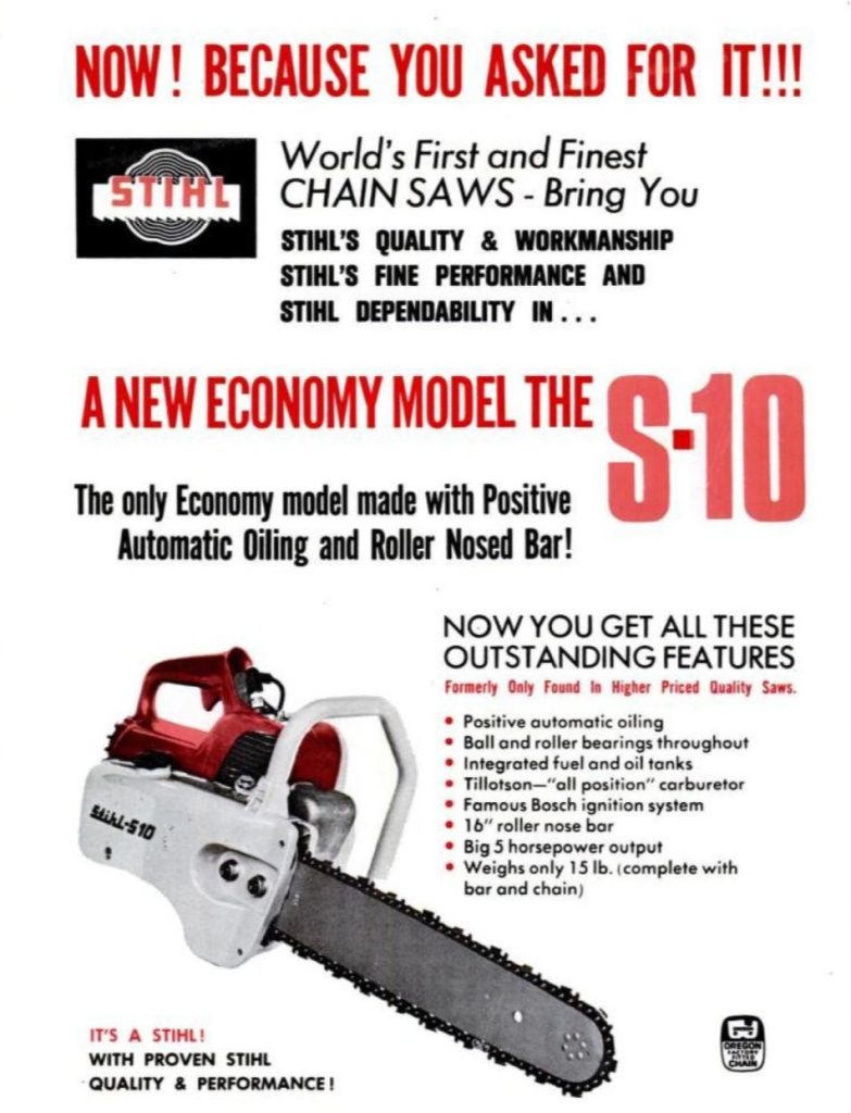 Next was this page on the lesser-known STIHL S-10 Top Handle Chainsaw.